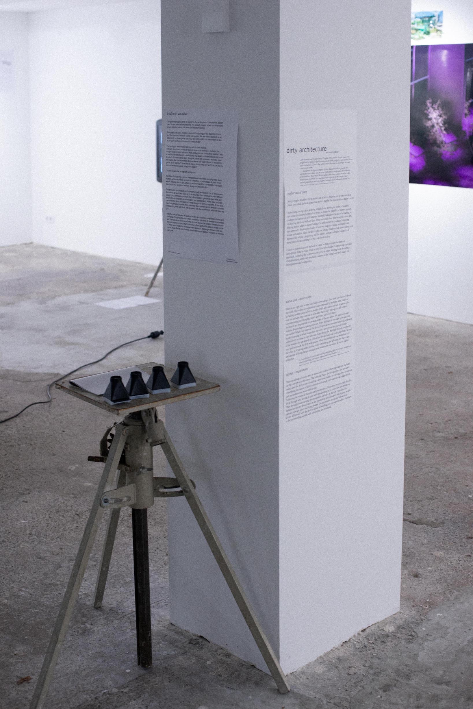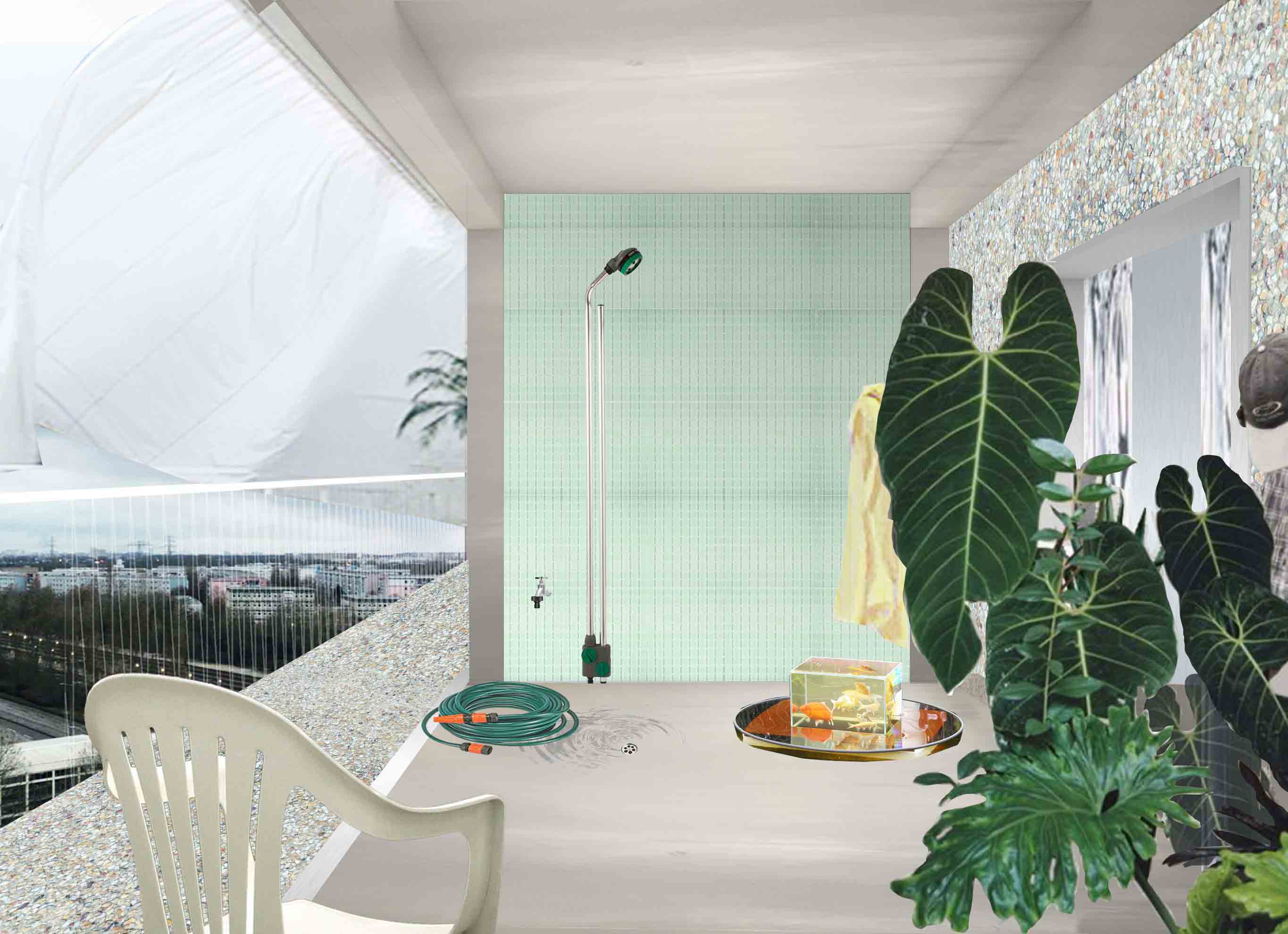 Die entstandenen Collagen sind keine illustrativen Darstellungen, die eine Art Wahrheit zu simulieren versuchen. Vielmehr handelt es sich bei ihnen um atmosphärische Collagen, die mitten im architektonischen Entwurfsprozess entstanden sind - noch bevor der Plan und die Konstruktion abgeschlossen waren - und so den Entwurf gleichermaßen mitbestimmten. Der ständige Dialog von Bildern und Konstruktion, Pragmatik und Notwendigkeit, Technik und Poesie in diesem Prozess macht klar, dass nicht nur die Bilder, sondern auch die Konstruktion, die Pragmatik, die Notwendigkeiten und vielleicht sogar Bauvorschriften poetisches Potenzial beisteuern können.